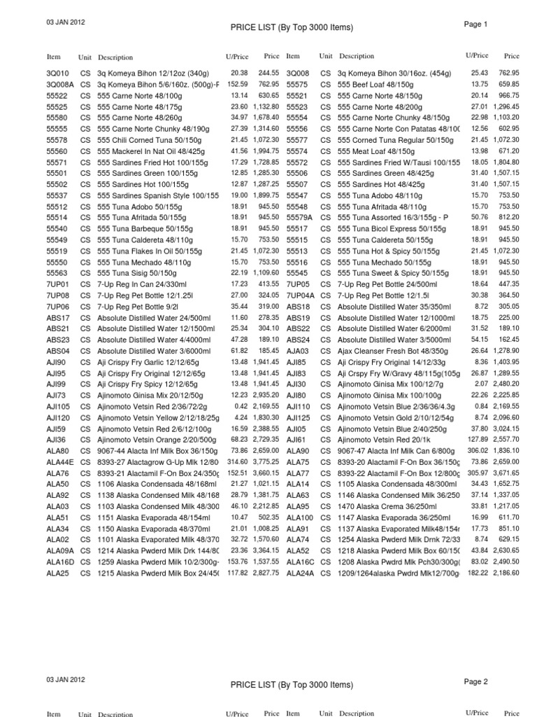Top 3000 Price List (1) | Ketchup | Food Ingredients